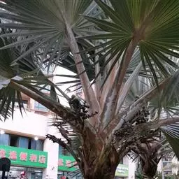 霸王棕是棕榈科霸王棕属常绿乔木,高可达20~30米。基部膨大,叶基宿存。叶片扇形,掌状分裂,…