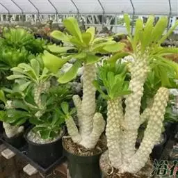 魁伟玉原产南非,是一种大戟科的多年生肉质植物,植株具粗圆筒形肉质茎,有10条以上的突出棱,…