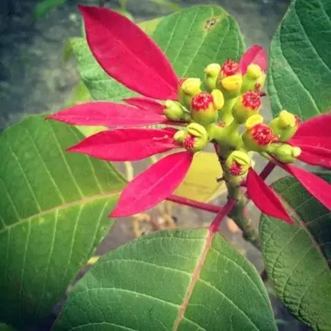 肖黄栌,紫锦木(Euphorbia cotinifolia L.)为灌木,叶染褐红色,作为观叶植物极似漆树科黄栌,故名肖黄栌。其实只需折断枝叶见流乳白汁,此乃大戟科许多种类的特征,足以分辨。