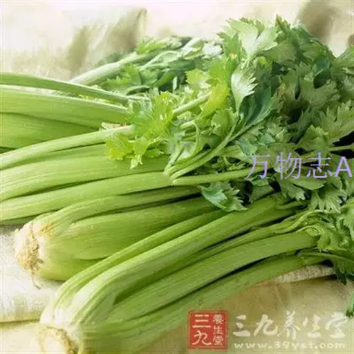 《本草推陈》:“治肝阳头痛,面红目赤,头重脚轻,步行飘摇等症。” 芹菜