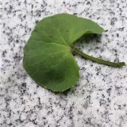 多年生叶片肉质,叶近圆形或肾形,有V形缺口,叶长 2~3 公分,宽 1.8~2.5 公分,边缘有 5~7 浅裂,裂片有钝锯齿,浅裂约等于锯齿深度,基部心形,掌状脉 7~9,叶面疏生短硬毛;叶柄长 5~15 公分,柄上密被柔毛;托叶膜质,顶端钝原或有浅裂,长 0.1~0.2 公分。