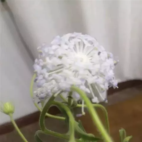 花为繖形花序,分散生于走茎的叶腋处,花序梗长于叶柄,长 5~15 公分,被有柔毛;繖形花序有花 18~26 朵,密生成球形的头状花序;花柄极短,长 0.1~0.15 公分,花柄基部有膜质、卵形或倒卵形的小总苞片;无萼齿;花瓣 5 枚,渐尖形,白色或乳白色;花柱幼时内卷,花后向外反曲,基部隆起。花果期 4~11 月。