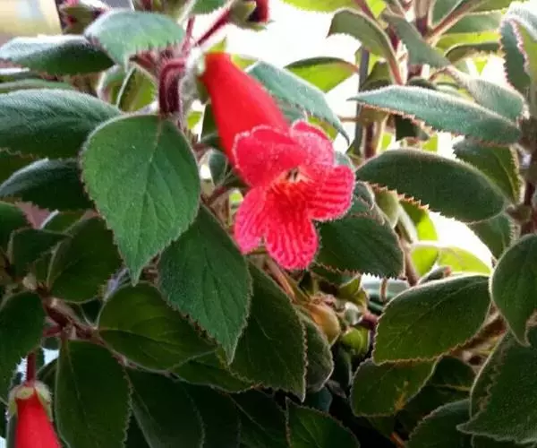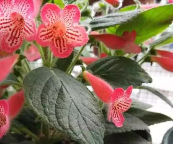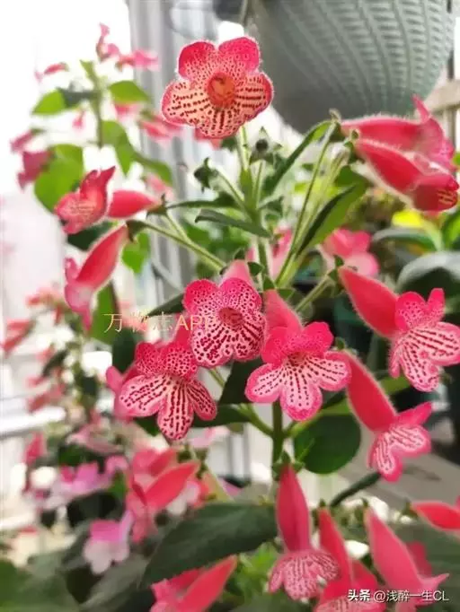 艳斑苦苣苔(Kohleria),别名花猫(Kohleriahybrida)也称“花脸”,是苦苣苔科花脸苣苔属的多年生草本植物,又名角桐草。花朵由无数的点、线及多种色块集合而成的艳斑苣苔,有着独树一格的艳丽气质,使得艳斑苦苣苔成为苦苣苔家族中最亮眼的一属。原产于中南美洲,属于苦苣苔科多年生草本植物。株高约10-50公分,全株布满细毛。叶色浅绿至深绿或紫红,部份品种叶上有斑纹,叶长椭圆形,边缘有细锯齿。花腋出,花冠筒状,花径约1-3公分,花瓣上有斑点及放射性的线条,花色有绿、红、粉红、橘等,花期为春至秋季。根部具毛虫状鳞茎,故其根茎常被网友称为“毛毛虫”,于原生地冬季休眠时地上部会萎凋,以鳞茎越冬,待春天天气转暖会再度萌发新芽;但在南方,很多品种于冬季时并不会休眠,只是开花数减少。其生性强健,花色艳丽,花期很长,病虫害少,管理容易,深得花友喜爱。