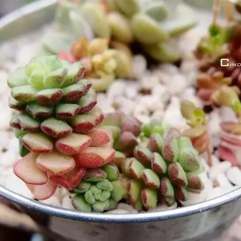 铭月是景天科景天属的多年生亚灌木。多分枝,茎蔓生或直立,高约10-30厘米。…