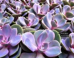 紫珍珠是景天科石莲花属的多年生肉质草本植物。植株中小型;叶片肉质,匙形,呈莲座状紧密排列;叶片粉紫色,…
