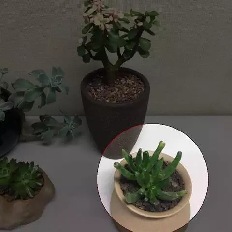 叶子表面宽厚,富肉质感且带有磨纱质感,看像石头质地;开红色小花,生于植株顶部,倒伞形密生,形状像花…
