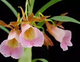 喉红石斛:附生。茎丛生,直立,粗短,近棒状纺锤体。叶2-4枚,生于茎顶。总状花序顶生,花序轴长5-…