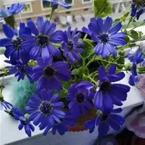 蓝目菊别名非洲雏菊、大花蓝目菊。原产南非,不耐寒.忌炎热,适宜温度18℃~26℃,喜向阳环境。…