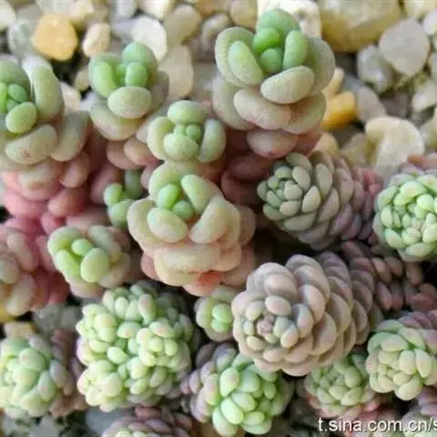 玉米石是景天科、景天属植物。多年生草本多浆植物。植株低矮丛生,多分枝。叶膨大成圆筒形、卵形或近小球形,…