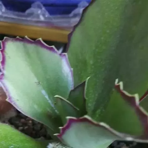 红缘莲花掌属蔷薇目、景天科植物,原产大西洋的加那利群岛。质厚,蓝绿色,被白霜,叶缘红褐色。聚伞花序,…