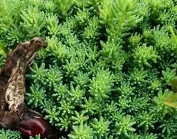 薄雪万年草 薄雪万年草是一种清秀典雅、富有野趣的小型多肉植物,因其耐旱性好,能够在土壤较少的地方生长,尤其适合点缀山石盆景或直接种植于山石上,其层次丰富,或如远观的微缩版针叶林,或像一道道绿色溪流跌宕于峰壑之间,展示着不同的风采,给人以生机盎然的感觉;也可作为树桩盆景的盆面点缀植物,满盆翠绿,更是清雅宜人。而有屋顶花园的人家更可以将其作为屋顶绿化植物,具有植株生长密集,覆盖性良好,生长迅速,耐强光曝晒、耐干旱等优点,不需要过多的打理就能够生长良好。此外,还可用小盆栽种,点缀于阳光充足的庭院、阳台、窗台等处,自然清雅,苍翠欲滴,给人们带来绿色的享受。 [2-3]