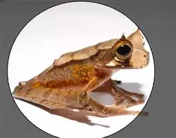 棘胸蛙(图1) 棘胸蛙形似黑斑蛙,但比黑斑蛙粗 壮肉肥。全身披灰黑色,皮肤粗糙,背部有许多疣状物,多成行排列而不规则。雄蛙背部有成行的长疣和小型园疣,雌蛙胸部无刺,背部散布小型园疣,腹部光滑有黑点。棘胸蛙雄大雌小,雄蛙体长约8至12厘米,体重可达250~750克,头、躯干、四肢的背面及体侧布满小圆疣,疣上还有分散的小黑棘,以体侧最明显。头扁而宽,吻端圆,吻棱不显;鼻孔位于吻与眼之间;眼间距小于鼻间距;两眼后端有横置的肤沟,颞褶极显着;背部涂棕色,两眼间有一黑横纹,上下唇边缘有黑纵纹。雄蛙有一对咽侧内声囊。胸部满布分散的大刺疣;刺疣中央有角质黑刺。前肢粗壮,指端膨大成圆球形,指侧有厚缘膜;关节下瘤及掌突均发达,第一指基部粗大,内侧三指均有黑刺。棘胸蛙后肢肥硕,胫趾关节前伸可达眼部,跗褶明显;趾间全蹼,第一、五趾的游离缘有膜;关节下瘤发达;内耳突发达,无外耳突。