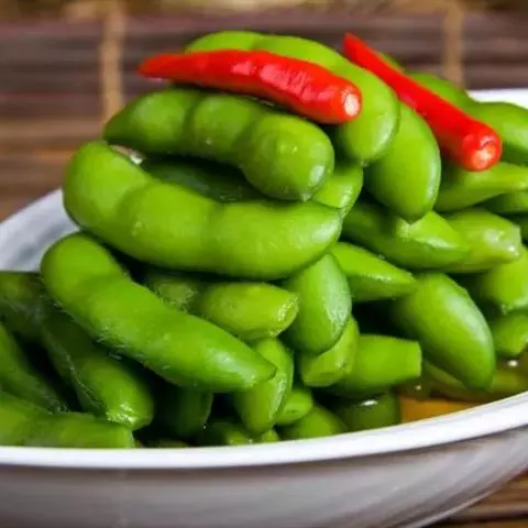新鲜连荚的黄豆,约有五千多年的栽培历史。在吃饭的时候,来上一盘毛豆,喝上一点啤酒,其味道特别好,毛豆纤维含量丰富,对人体有好很大的好处。在之前,很多人都以为芹菜杆的纤维含量最高,其实毛豆才是当之无愧的第一名 。