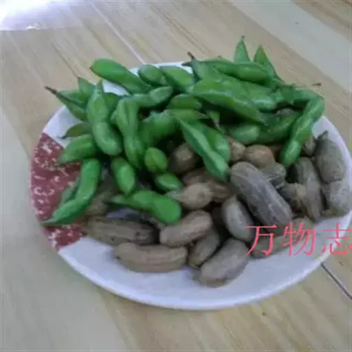 毛豆 毛豆即俗称的大豆、黄豆,为蝶形花科植物大豆的种子,一年生草本农作物、高30~90厘米、茎粗壮、方菱形;荚果矩形、扁平形、长5~6厘米、下垂、荚上密生黄色细长硬毛;种子2~4粒、鲜时扁椭圆状卵圆形、长0.8~1.5厘米、淡绿色、干时黄色、黄绿色或者紫黑色。春季毛豆即菜用大豆,也称毛豆、青毛豆、白毛豆,是指籽粒鼓满期至初熟期之间收获的青荚大豆,豆荚嫩绿色,青翠可爱。毛豆老熟后就是我们熟悉的黄豆。