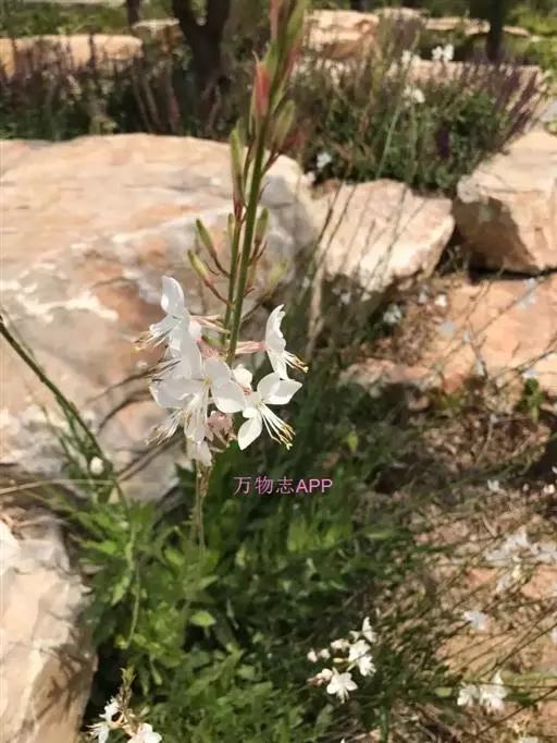 山桃草 原产于美国路易斯安那州南部及得克萨斯州,主要分布于北美洲温带,我国北京、山东、南京、浙江、江西、香港等有引种,并逸为野生。