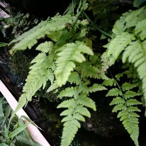 杯盖阴石蕨为小型附生蕨,不会开花,属于从生的蕨类观叶植物。 该种形体粗犷,叶形飘逸,株型紧凑,粗壮的根状茎密被白毛,形似狼尾,十分独特。可附于树干、山若上栽培,也可丛植于山石边或墙垣边。也常盆栽用于室内的窗台、案几摆放。
