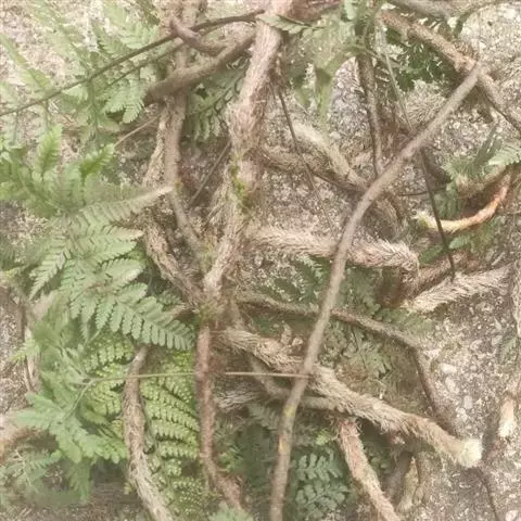 植株高达40厘米。根状茎长而横走,粗约6毫米,密被蓬松的鳞片;鳞片线状披针形,长7-8毫米,基部宽约1毫米,先端长渐尖,以红棕色的圆形基部盾状着生,黄棕色或棕色,老时渐变为浅灰褐色。