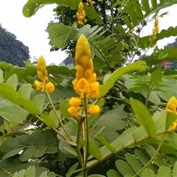 翅荚决明 Roxb.)是豆科决明属灌木植物,高3米。羽状复叶,在叶柄和叶轴上有窄翅;小叶倒卵状长圆形,…