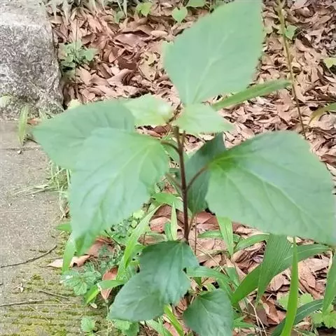 多年生草本,高30一90厘米。茎直立,分枝对生、斜上,茎上部的花序分枝伞房状;全部茎枝被白色或锈色短柔毛,上部及花序梗上的毛较密,中下部花期脱毛或无毛。叶对生,质地薄,卵形、三角状卵形或菱状卵形,长3.5—7?厘米,宽1.5—3厘米,有长叶柄,柄长4—5厘米,上面绿色,下面色淡,两面被稀疏的短柔毛,下面及沿脉的毛稍密,基部平截或稍心形,顶端急尖,基出三脉,侧脉纤细,边缘有粗大圆锯齿;接花序下部的叶波状浅齿或近全缘。头状花序多数在茎枝顶端排成伞房花序或复伞房花序,花序径2—4厘米或可达1.2厘米。总苞宽钟状,长3毫米,宽4毫米,含40—50个小花;总苞片l层或2层,线形或线状披针形,长3毫米,顶端渐尖。花托高起,圆锥状。管状花两性,淡紫色,花冠长3.5毫米。瘦果黑褐色,长1.5毫米,长椭圆形,5棱,无毛无腺点。冠毛白色,纤细,与花冠等长。花果期4—10月。