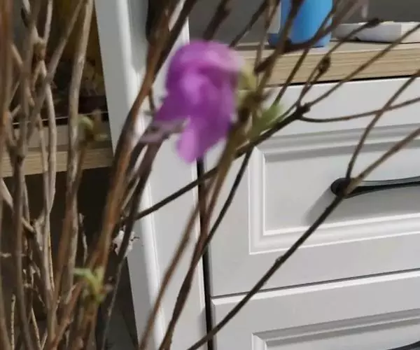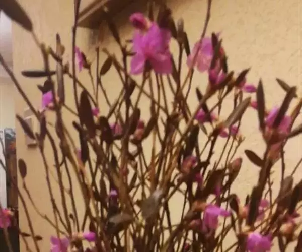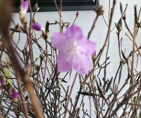 兴安杜鹃(学名:Rhododendron dauricum L.)是杜鹃花科,杜鹃花属半常绿灌木,高可达2米,分枝多。叶片近革质,椭圆形或长圆形,两端钝,上面深绿,下面淡绿,叶柄被微柔毛。花序腋生枝顶或假顶生,伞形着生花先叶开放,花冠宽漏斗状,粉红色或紫红色,花药、花柱紫红色,蒴果长圆形,5-6月开花,7月结果。