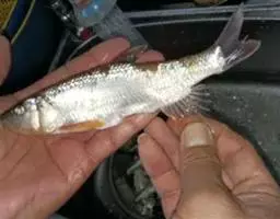 刺鲃 背鳍短小,外缘微凹,其起点位于腹鳍起点的前上方,末根不分枝鳍条较软,仅在基部稍硬,较小个体较柔软,其起点近前方有一平卧向前的倒刺。胸鳍后伸不达腹鳍基部。腹鳍约与胸鳍等长,其起点约与背鳍第l--2根分枝鳍条基部相对,后伸不及臀鳍起点。臀鳍较短,不达肛门,其外沿平截。尾鳍叉形,上、下叶等长。肛门紧靠臀鳍起点。鳞片大,腹鳍基部具有狭长的三角形腋鳞。侧线完全,前段稍向腹面弯曲,后段较平直,生殖季节雄鱼吻部具有白色颗粒状珠星。身体背部青灰黑色,略带黄色,腹部灰白色,体侧鳞片基都有一黑斑。背鳍灰黑色,外缘近边缘有一条黑带,胸鳍橙黄色,腹鳍和臀鳍为橙色。尾鳍灰黑色,下叶末端带红色。刺鲃是产区的经济鱼类之一,个体大,肉肥厚,味鲜美,具有较大的经济价值。