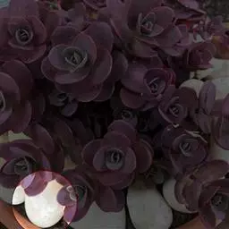 紫珍珠是景天科石莲花属的多年生肉质草本植物。植株中小型;叶片肉质,匙形,呈莲座状紧密排列;叶片粉紫色,…