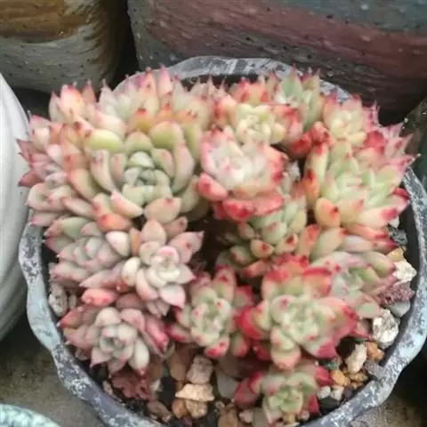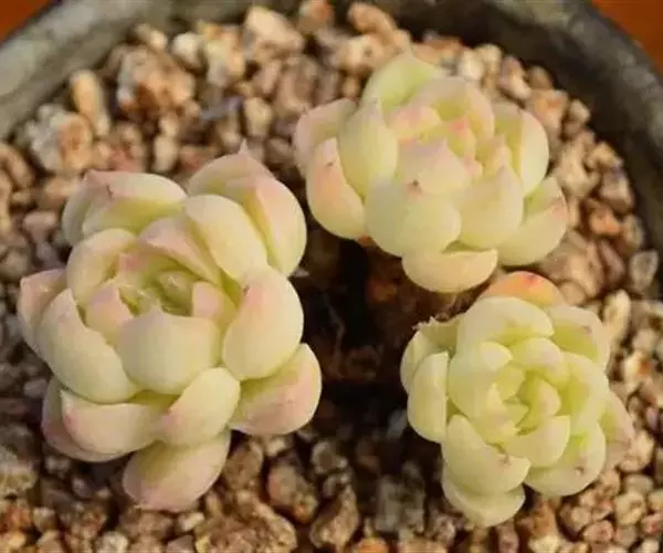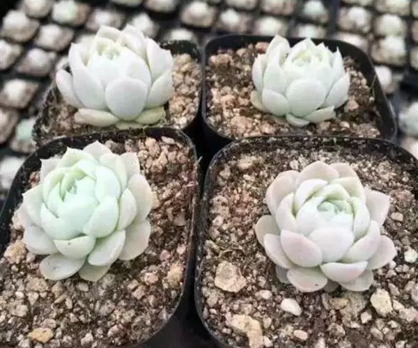 阿尔巴白月影是景天科、拟石莲花属的多年生植物、多肉植物,植株小型,叶片在阳光充足且具一定温差的适宜环境下呈通透的白色。在园艺育种中是优秀的亲本。