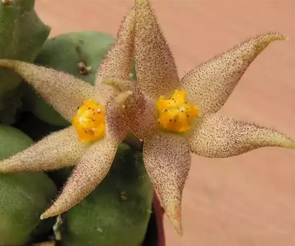 豹皮花株形奇特,五角形的花朵,围绕塔形茎干的基部丛生开放,可作花坛、花园绿化,也可盆栽。