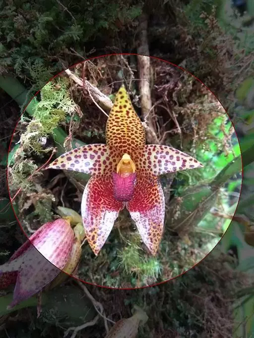 花单生或几个簇生;花梗长2-3厘米;花直径3-5厘米;花冠辐状呈五角星,外面绿色,光滑,内面黄绿色,凹凸不平,具暗紫色横条纹及斑点,花冠筒短,裂片三角状卵圆形,顶端短尖,边缘有睫毛;副花冠双轮,着生在合蕊冠上,外轮盔形,淡黄色,具淡紫褐色斑点,内轮副花冠5裂,裂端各2裂;花粉块每室1个,直立,内侧边缘有透明膜片。蓇葖平滑:种子顶端具白色绢质种毛。