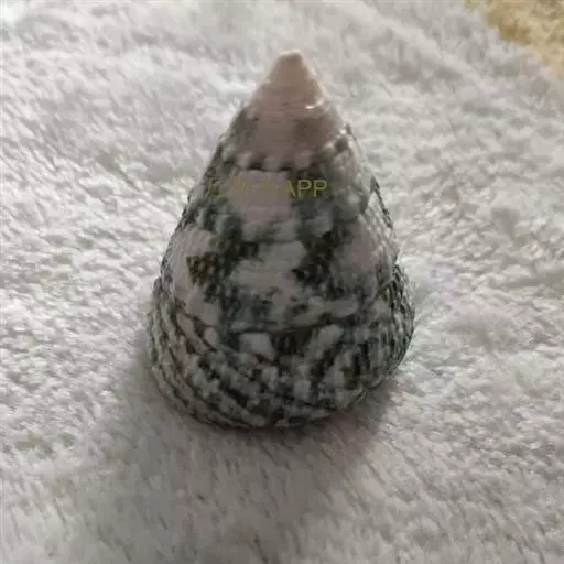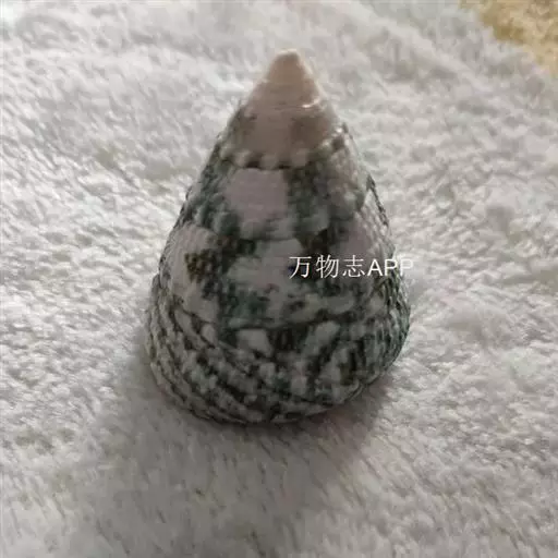 钟螺中体形最大、最重的一种,外形几乎呈等边三角形。大多数成贝的螺层除一些细斜纹外,大致光滑;中贝及所有幼贝螺层,都有管状小结节,有的在浅缝合线处形成凹槽。螺轴上有脊状齿。壳表浅粉红白色,有深红色宽斜条纹。(注:曾是制造纽扣的材料,现今仍有少量用来制作装饰品。)