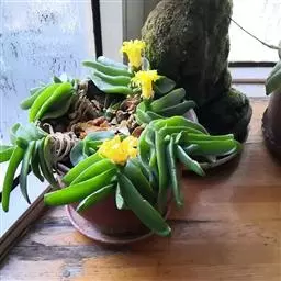 照波,番杏科多肉植物、此种生长较快,栽培容易,细长的浓绿色叶3厘米左右,开黄色花。…