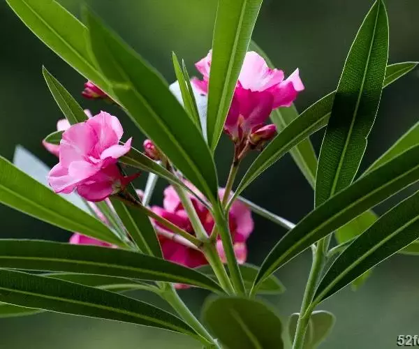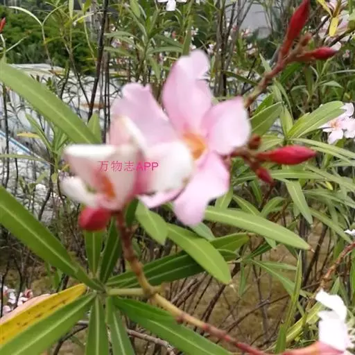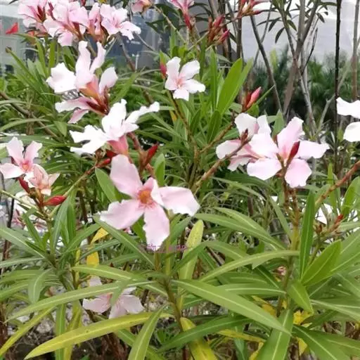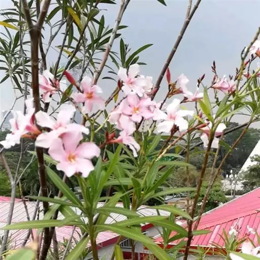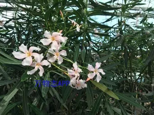 夹竹桃的叶片如柳似竹,红花灼灼,胜似桃花,花冠粉红至深红或白色,有特殊香气,花期为6-10月,是有名的观赏花卉。