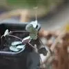扦插前应进行土壤消毒,把插床灌足水。将处理过的插穗按5×5厘米株行距扦插。要注意插穗的上下端,不能倒插,必须使插穗切口与土壤密接,并防止擦伤插穗下切口的皮层。为此,用铁条等先在插床穿孔,再插入插穗,但穿孔的深度要比插穗长度稍浅一些,以便插穗能插到土壤中。扦插深度一般以地上部露一两个芽为宜,扦插后做好标记和记录。