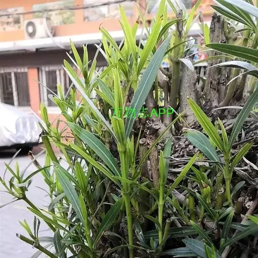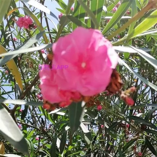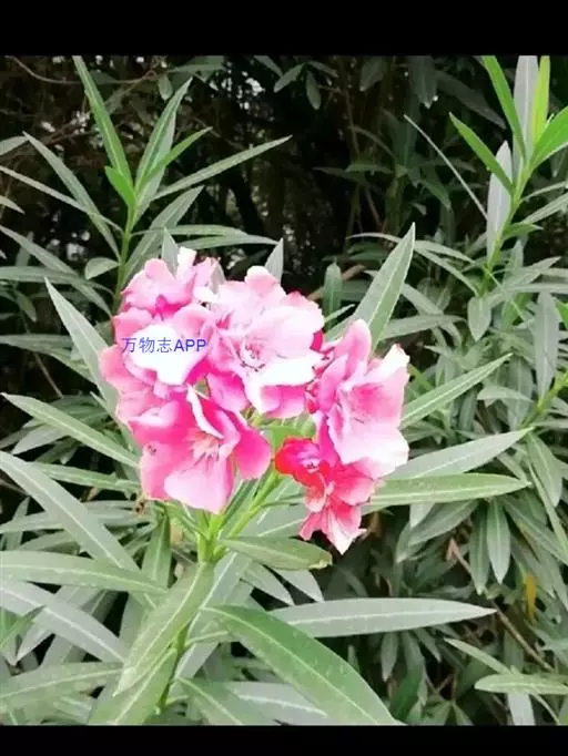 夹竹桃(学名:Nerium oleander L.)夹竹桃族夹竹桃属常绿直立大灌木,高可达5米,枝条灰绿色,嫩枝条具棱,被微毛,老时毛脱落。叶3-4枚轮生,叶面深绿,叶背浅绿色,中脉在叶面陷入,叶柄扁平,聚伞花序顶生,花冠深红色或粉红色,花冠为单瓣呈5裂时,其花冠为漏斗状,种子长圆形,花期几乎全年,夏秋为最盛;果期一般在冬春季,栽培很少结果。