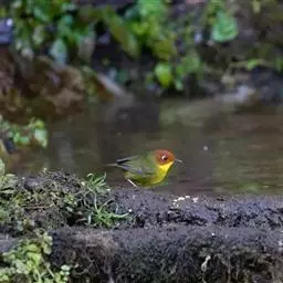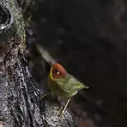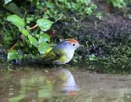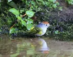 金冠地莺:形态与灰腹地莺相似,上体橄榄绿,前额至头顶渲染亮金黄色;下体几乎纯暗石板灰色,…