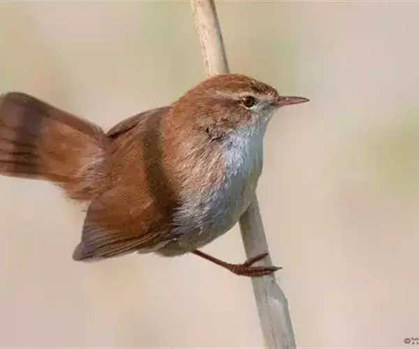 体大(17厘米)的通体棕色树莺。皮黄色的眉纹显著,眼纹深褐,无翼斑或顶纹。