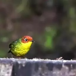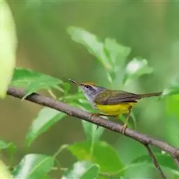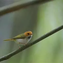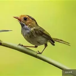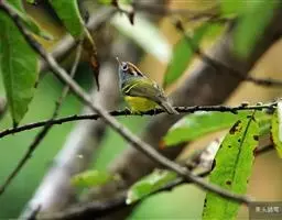 棕脸鹟莺:体长10厘米,是一种色彩亮丽而有特色的莺鸟。头栗色,具黑色侧冠纹。上体绿,腰黄色。下体白,…
