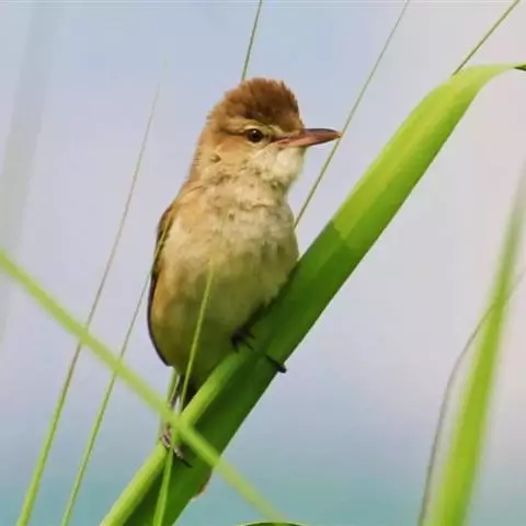 雌鸟比雄鸟小。与厚嘴苇莺的区别在眉纹色淡,体型较小而嘴细,头顶偏红,下体皮黄色较少。与日本树莺易混淆,不同处在于多棕色,下体两胁及尾下覆羽多为暗皮黄色。