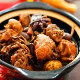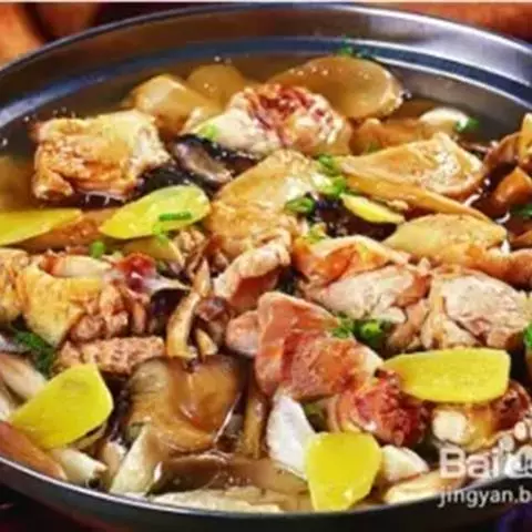 小鸡炖蘑菇是一道东北炖菜。通常是用干蘑菇、鸡肉和粉条一同炖制而成。榛蘑可以衬托出鸡肉的鲜香,粉条滑…