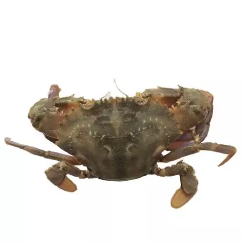 梭子蟹,有些地方俗称“白蟹”。因头胸甲呈梭子形,故名梭子。甲壳的中央有三个突起,所以又称“三疣梭子蟹”,属于节肢动物。雄性脐尖而光滑,螯长大,壳面带青色;雌性脐圆有绒毛,壳面呈赭色,或有斑点。梭子蟹肉肥味美,有较高的营养价值和经济价值,且适宜于海水暂养增肥。头胸甲梭形,宽几乎为长的2倍;头胸甲表面覆盖有细小的颗粒,具2条颗粒横向隆堤及3个疣状突起;额具2只锐齿;前侧缘具9只锐齿,末齿长刺状,向外突出。螯脚粗壮,长度较头胸甲宽长;长节棱柱形,雄性长节较修长,前缘具4锐棘。