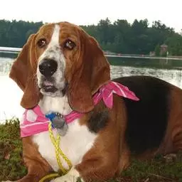 耳:两耳间距小、薄,呈V字形下垂、耳尖钝圆,耳长至咀角处。 鼻:宽阔,鼻镜黑色,白色犬允许肉色。