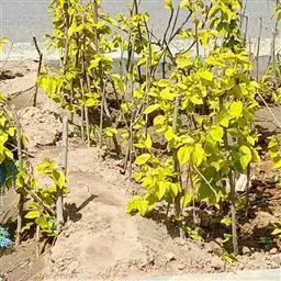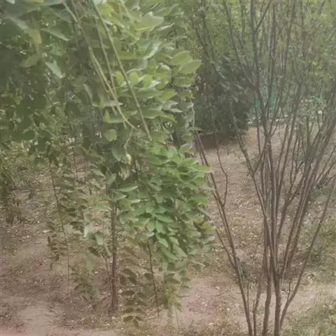 间苗:种子发芽后,幼苗长到10厘米左右时进行定苗,方法是按株距20厘米,留1株生长健壮苗,去除多余苗木。对缺苗断垄的地方,按株距20厘米移植多余苗,进行补植,每亩留苗5500株左右。定苗后应及时浇水。至苗木生长结束,当年苗高可达1-1.5米,地径0.8-1.2厘米。