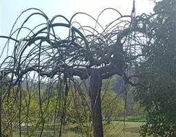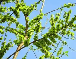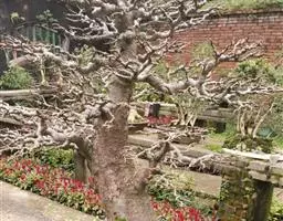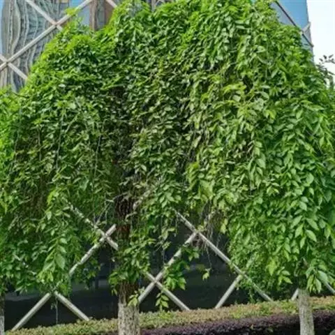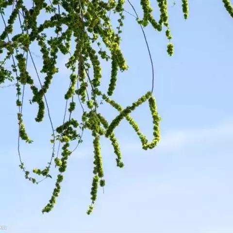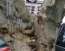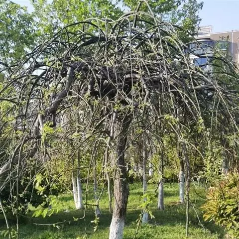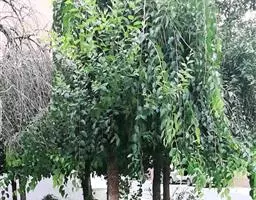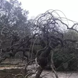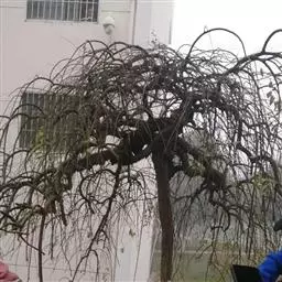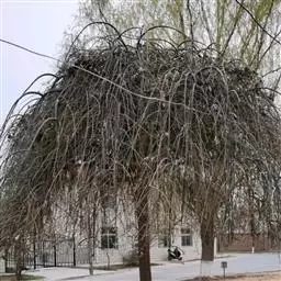 树皮暗灰色,粗糙,不规则纵裂。幼树枝条直立,且被白色毛;老树枝条先端下垂,有时木栓质发达成为瘤状。…