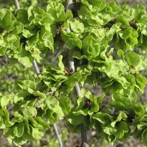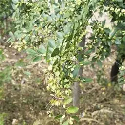 花在去年生枝上排成簇状聚伞花序。翅果椭圆形或长圆状椭圆形,长1.5-2厘米,宽1-1.4厘米,除顶端凹缺柱头面被毛外,余处无毛,果核部分位于翅果的中部或稍向下,宿存花被无毛,钟状,常5浅裂,裂片边缘有毛,果梗常较花被为短,无毛。花果期4-5月。