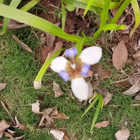 双色野鸢尾为多年生草本植物,叶子呈剑状淡绿色。…