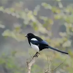 灰喜鹊:属雀形目、鸦科的中型鸟类。外形酷似喜鹊,但稍小。体长33-40厘米。嘴、脚黑色,额至后颈黑…