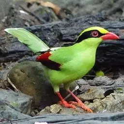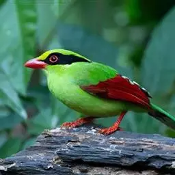 蓝绿鹊:中型鸟类,共有5个亚种。体长36-38厘米。尾长,嘴、脚红色。通体羽色主要为草绿色,…