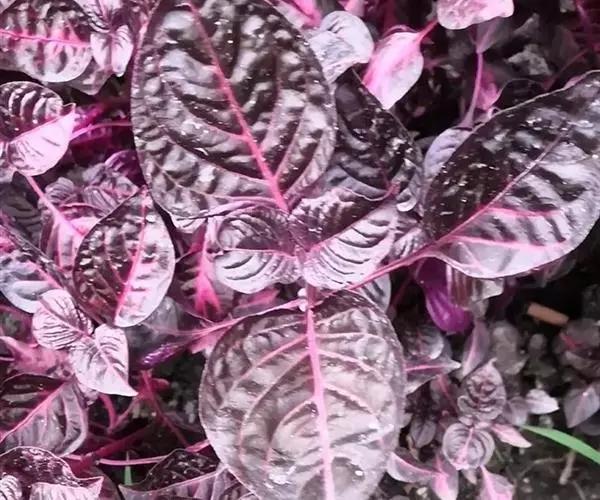 血苋全株紫红色,叶片绿色光亮,叶脉呈黄色或红色,叶色艳丽, 血苋 十分耐看。适宜盆栽、吊盆栽栽培和花坛、花径配置。