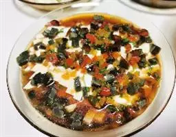 过桥豆腐是一道传统名肴,属于湘菜系。此菜柔滑细嫩,咸鲜适口,菜相美观,勾芡后,用小勺舀上一勺送入口中,…