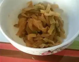 3、将葱丝,姜片,料酒,生抽,水淀粉和香油放入小碗中,调成芡汁。生抽也可以不放,可以保持自自然然、清清淡淡的颜色和味道;